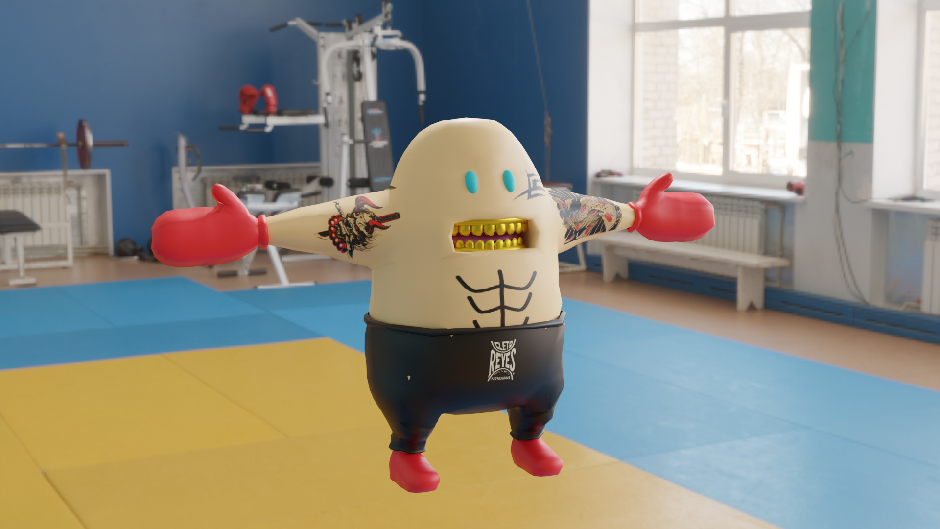 Modelo de un huevo boxeador con tataujes hecho en blender