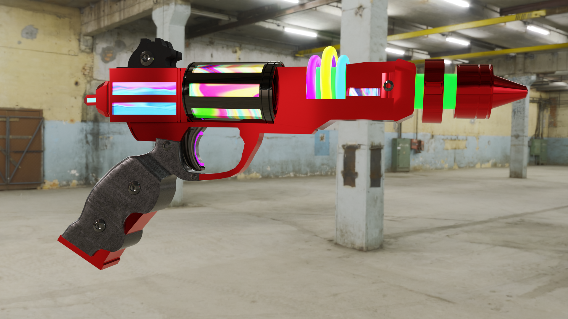 Render 360 de un cañon con materiales y efecto desgastado hecho en blender